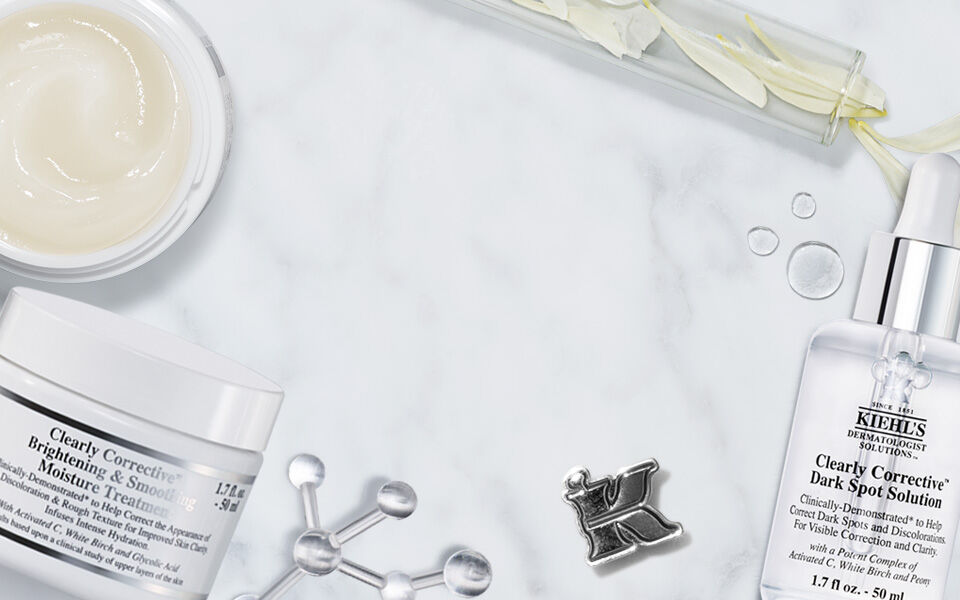 للحصول على صفاء مثالي للبشرة، يمكن تجربة تركيبات كيلز من مجموعة Dermatologist Solutions™ Clearly Corrective™ Collection للمساعدة في تفتيح البشرة بشكل ملحوظ.